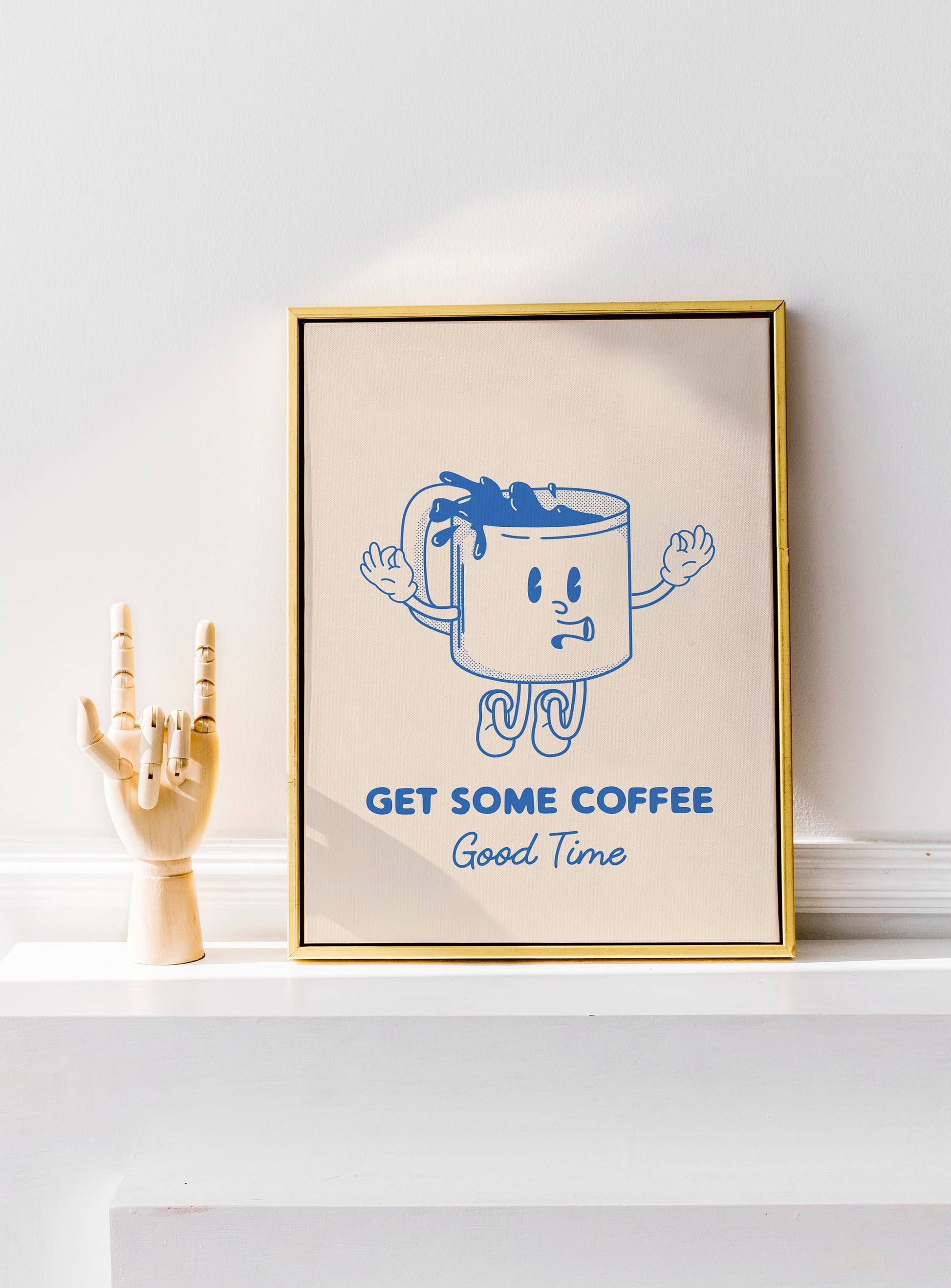 Get some coffee, retro coffee print, retro print, mascot print, coffee print, kitchen print, funny retro print