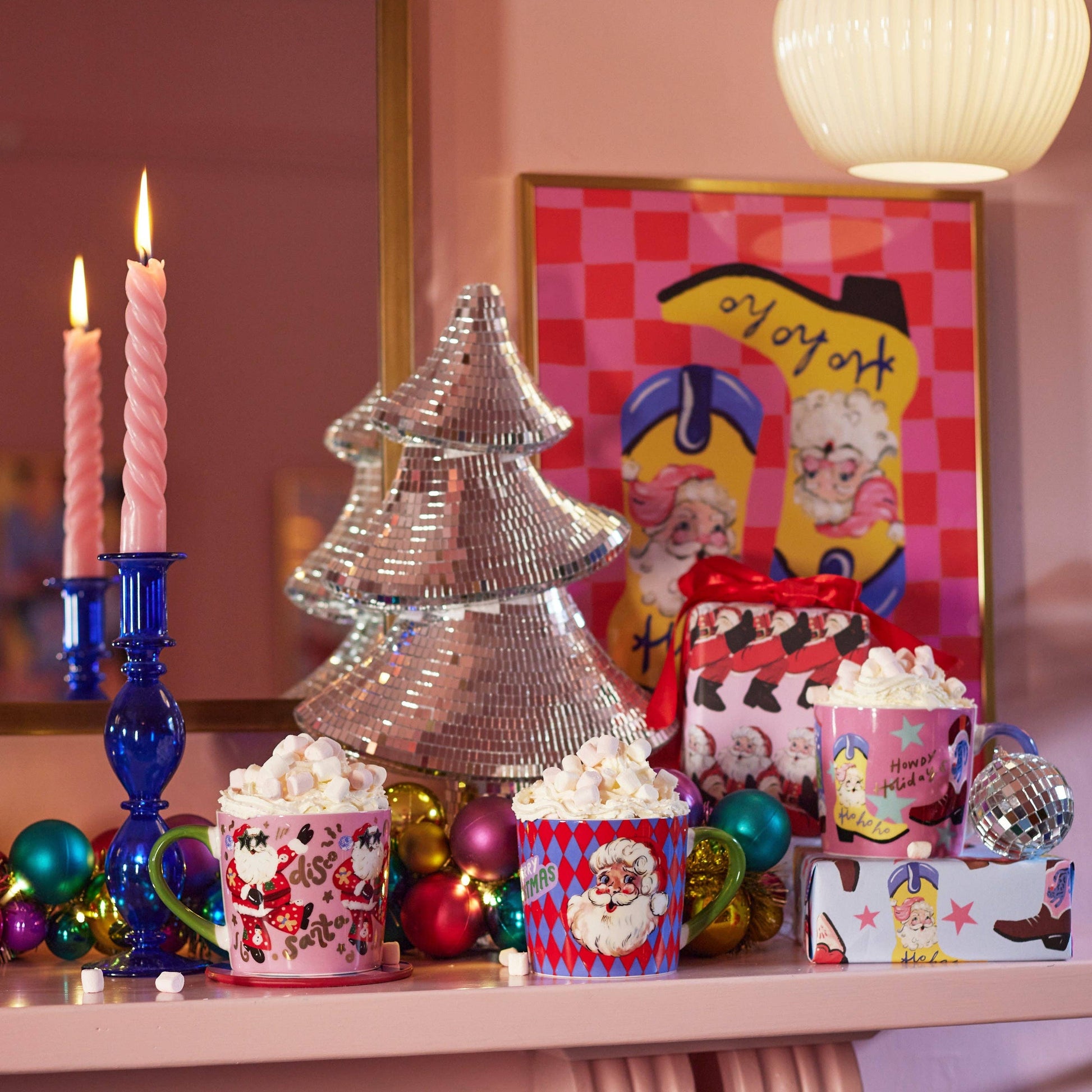 Add a touch of holiday cheer to your mornings with our Howdy Holidays mug. Featuring festive cowboy boots, gold lettering, and cute lilac and pink details with Christmas-themed illustrations, this mug is the perfect addition to your coffee or tea routine. Embrace the festive season with every sip!