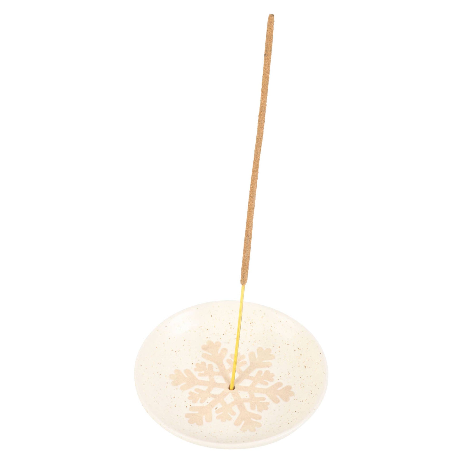 This adorable incense plate will catch any falling ash when holding your favourite, festive incense stick. A classic snowflake and speckled, off-white finish makes this a cute and understated piece for any home this winter season.
